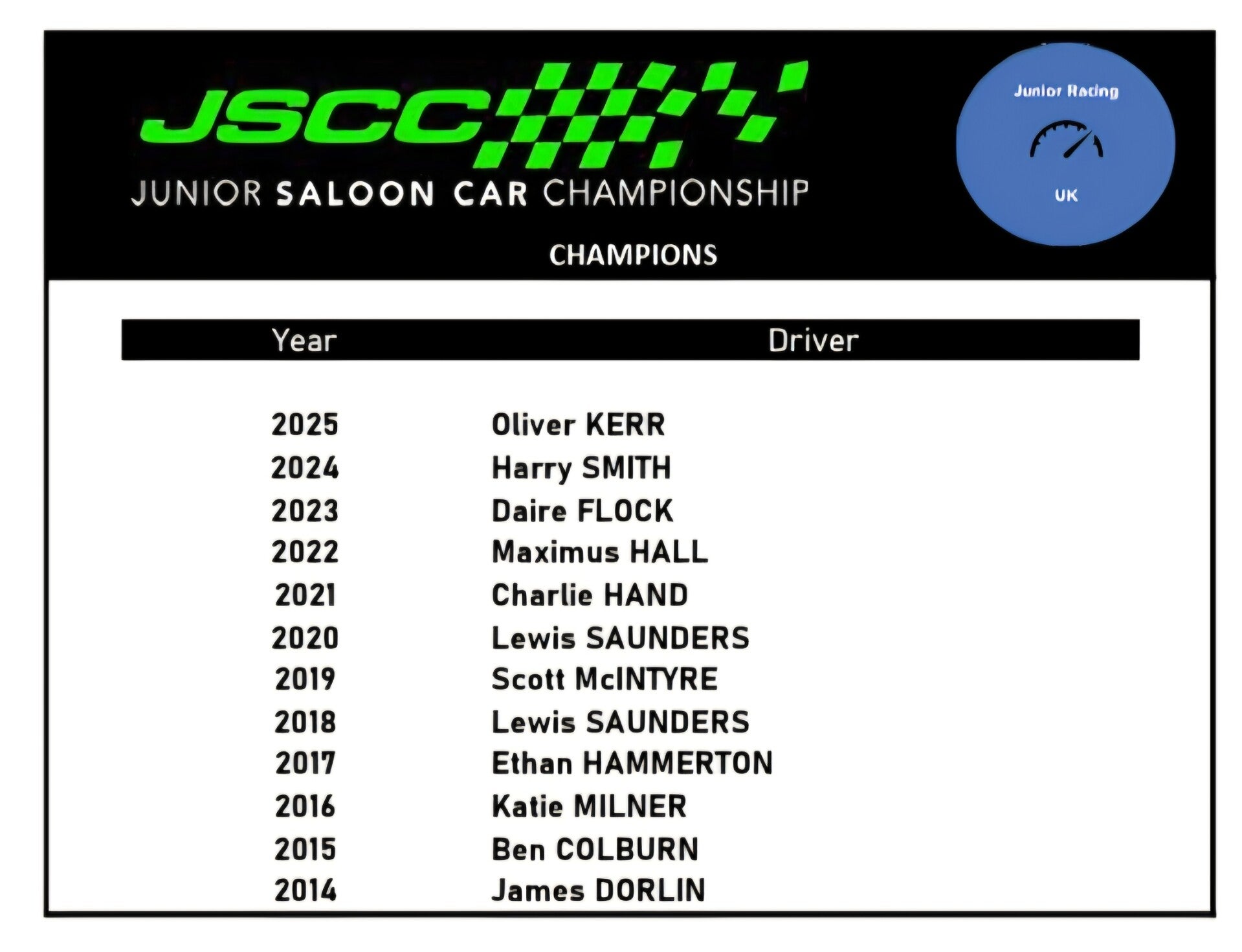 Scholarship Winners in History for the Junior Saloon Car Championship.